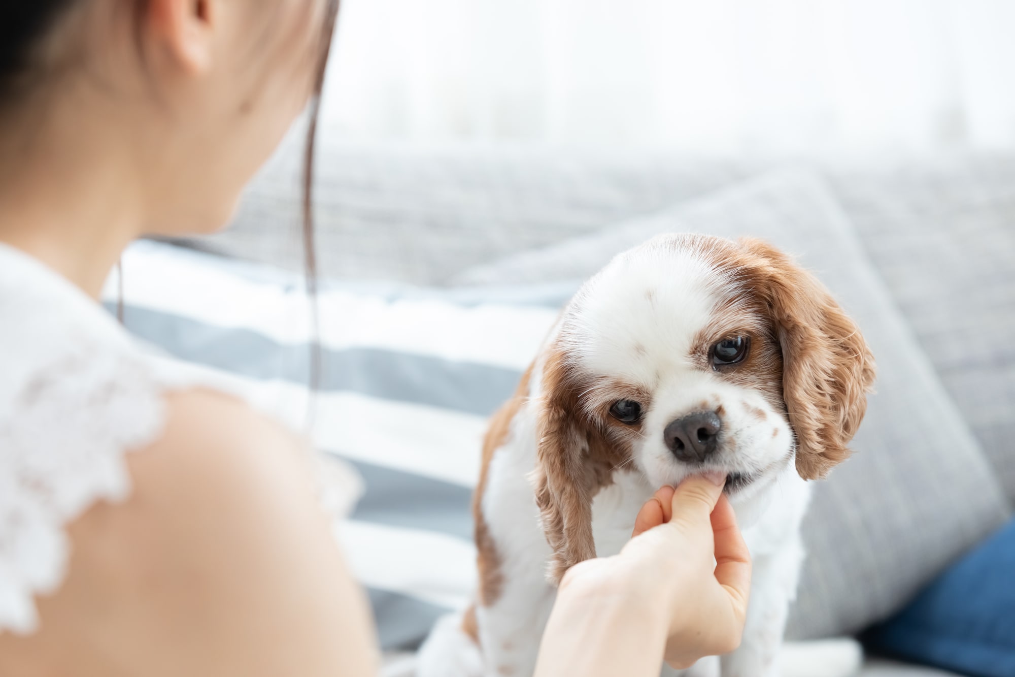口の中に異物を入れられることを怖がる犬の場合は、飼い主さんが指で直接歯を磨いてあげる方法があります。