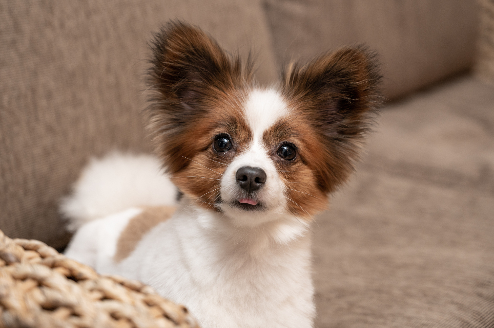 パピヨンも骨格が小さく、目周りの毛色の白い子が多い為、涙やけが目立つ傾向があります。