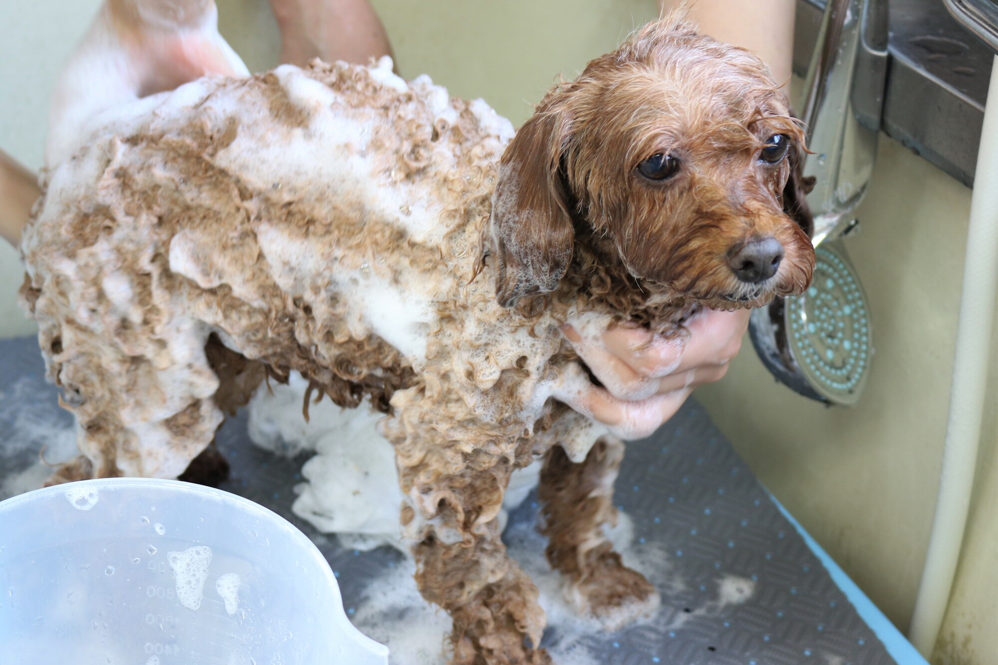 シャンプー中心の場合、小型犬で1時間半程度が目安です。