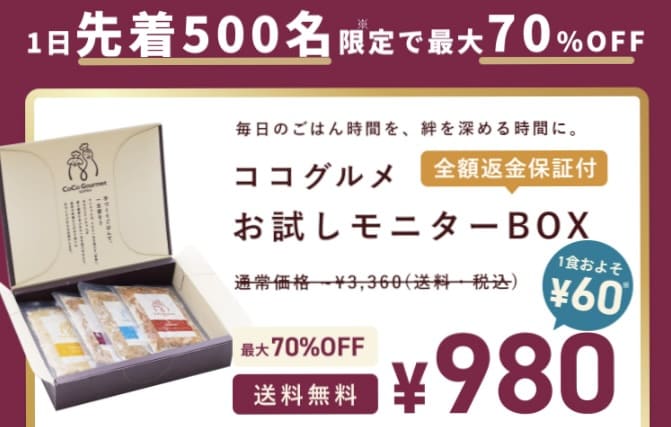 でも、ココグルメならその心配は一切いりません。なぜなら、お試しセットには「全額返金保証」が付いているんです!