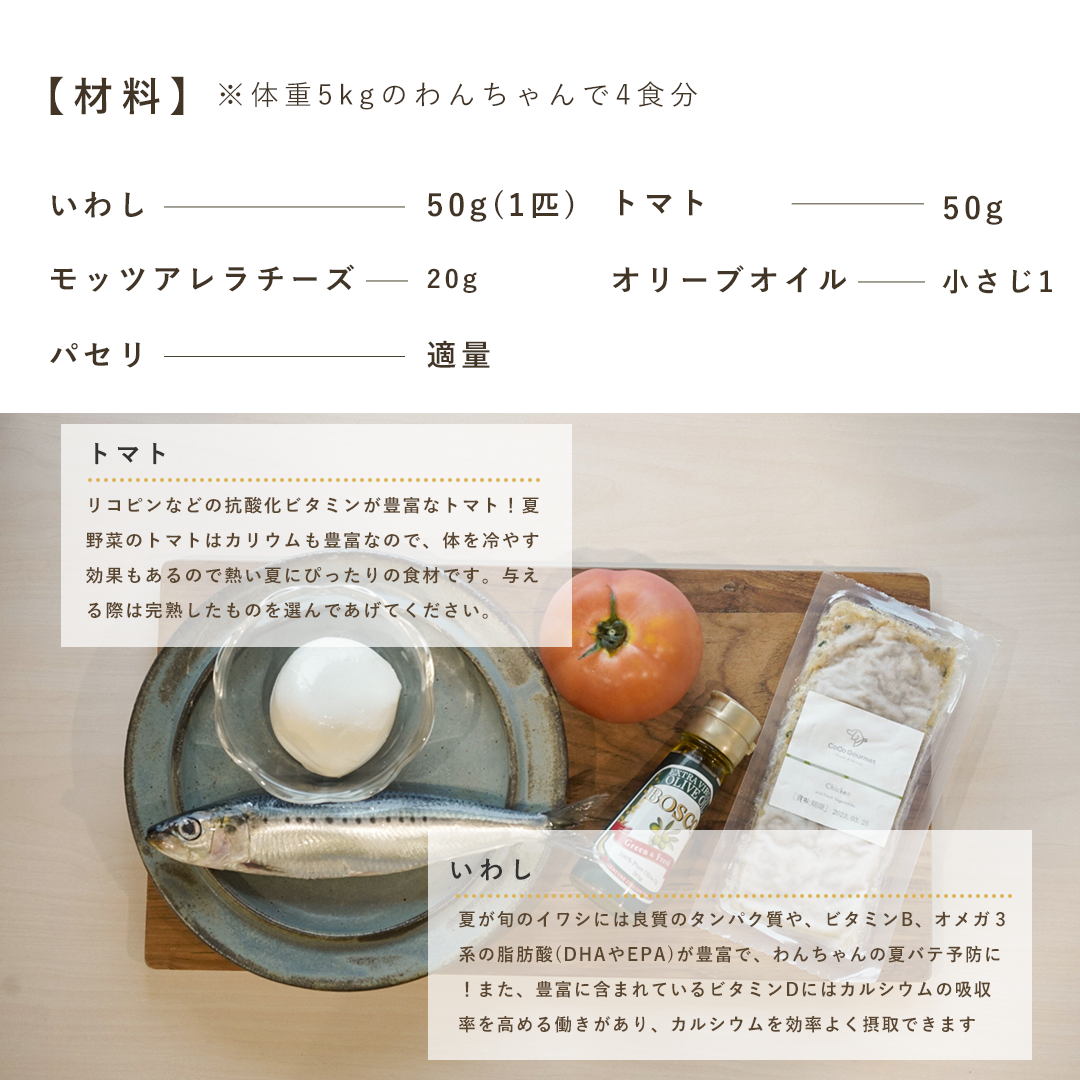 手作りアレンジレシピの材料【※体重5kgのわんちゃん(4食分)】