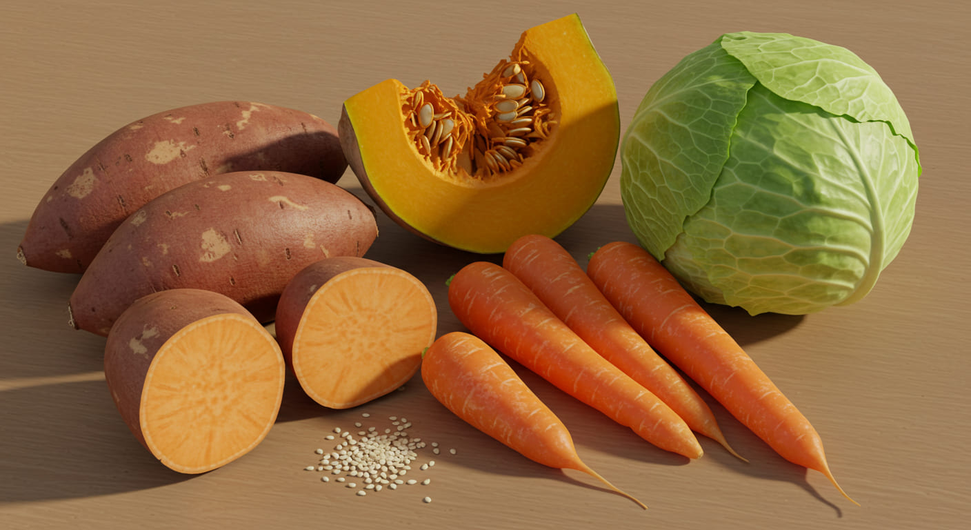 さつまいもやかぼちゃの自然な甘みは、わんちゃんの食欲をそそりますよね。エネルギー源になるだけでなく、ビタミンや食物繊維もしっかり摂れて、体の内側から健康を支えてくれます。