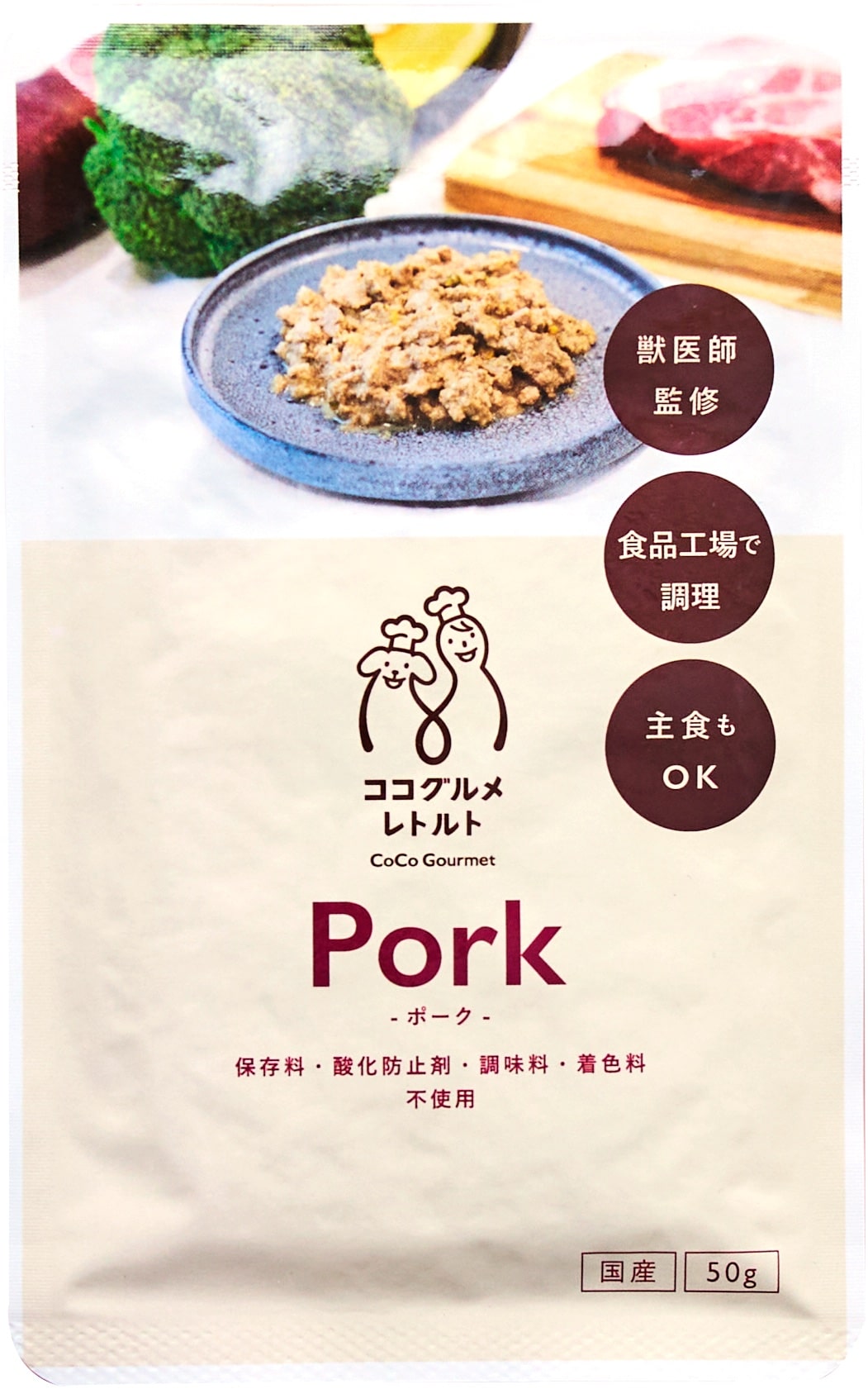 国産豚肉(もも、レバー、ハツ、かた、かたロース)、国産さつまいも、国産ブロッコリー、国産かぼちゃ、ごま(国内製造)、かつお節粉(国内製造)、殺菌乳酸菌(国内製造)、粉末昆布(国内製造)