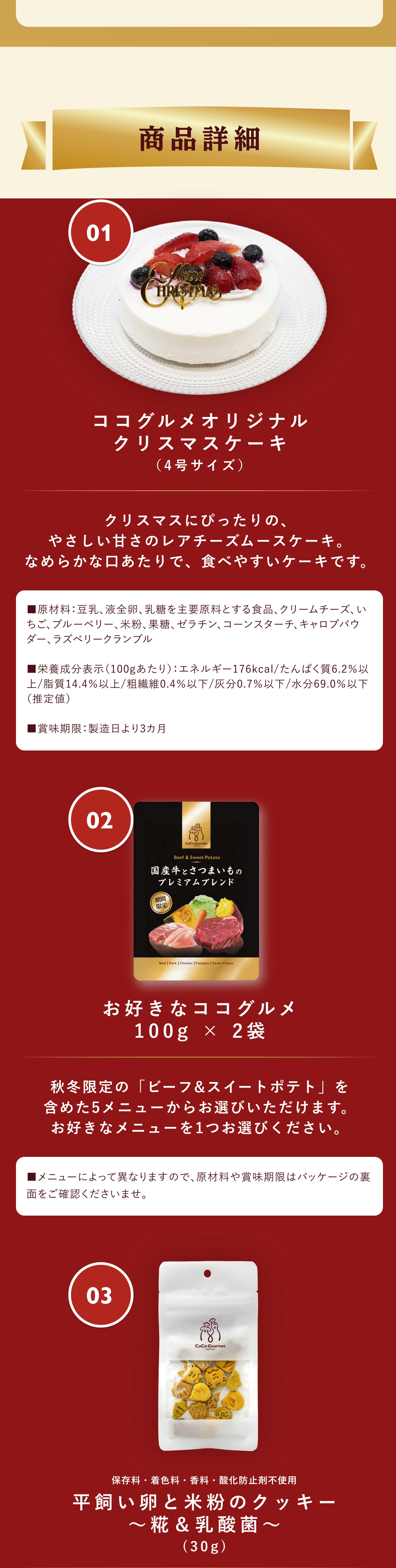 返金保証制度の対象は、ココグルメを初めて購入された商品(1住所ごとの初回配送)分のみに限ります。